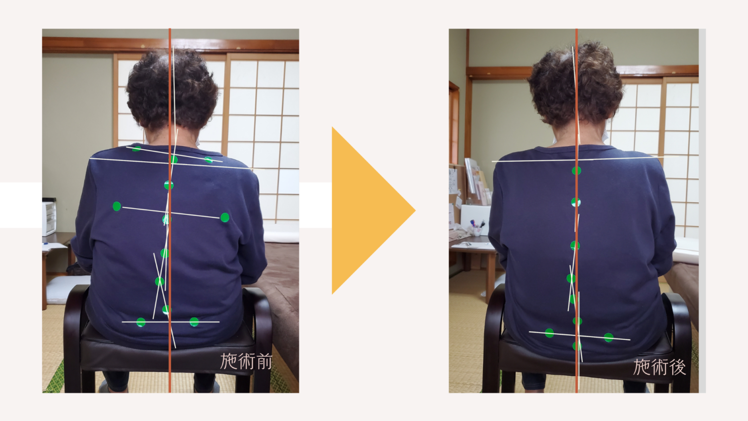 施術・調整後に、痛みに変化があるかどうか、骨格に変化があるかどうかを確認します。