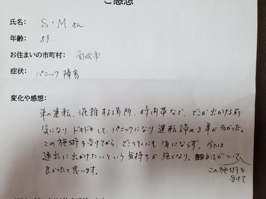 症状により異なりますが、1回で効果を感じる方もいれば、数回の施術が必要な場合もあります。